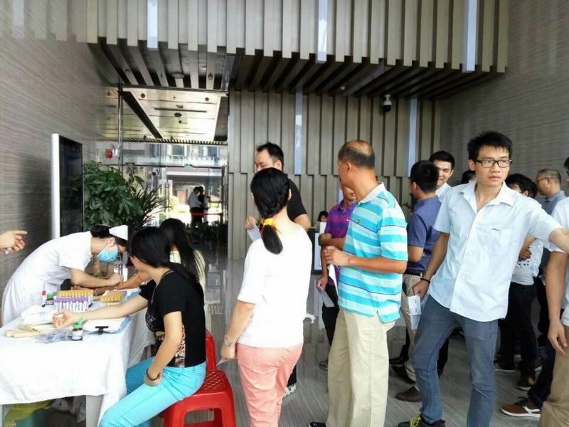 2015年9月19日,正大机电公司一年一度的员工体检在零壹科技园一号楼大堂举行,正大机电公司佛山区域200多名员工参加了健康体检。这是公司连续第18年为员工提供的免费健康体检,也是正大机电公司整体搬迁到零壹科技园后的第一次员工体检。禅城中心医院派出专门医疗小组上门为员工进行体检工作。体检现场的人数较多,大家都能做到耐心等待,等待过程与其他同事聊聊工作、聊聊生活,整个体检过程秩序井然、有条不紊。
