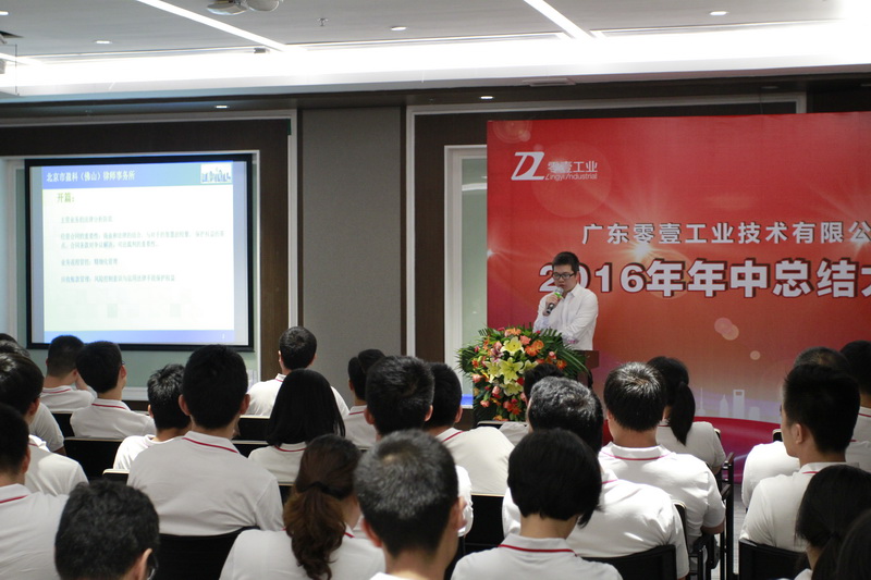 晚上,正大机电公司王正虎总裁与部分同事展开主题为“如何实现自我”座谈会:让大家更清醒地认识自我,要在事业上取得成功,必先用生命耕耘。而另一部分同事则是参加了《经营合同法律风险防范》培训,学习在商业活动中如何真正有效地保障自身的利益。在2016的上半年,零壹工业公司全体同仁同心协力,奋发图强,攻克难关,从零到壹,共同实现今年年初预定的目标,为创建公司未来美好的蓝图贡献了一份力量。下半年,大家将会拿出比上半年更加强烈的热忱,去攻克一个又一个的难关,上交一份今年最满意答卷。至此,广东零壹工业技术有限公司2016年年中总结大会圆满结束。