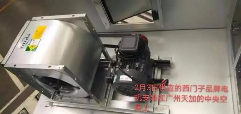 之后,广州天加不仅参与了北京小汤山医院项目,还参与了深圳、郑州等各地小汤山医院项目的中央空调供应。这些项目的中央空调能快速交付使用,充分诠释着广东零壹“客户至上”的理念,也体现了零壹人努力拼搏的精神。2月3日至2月28日期间,广东零壹已为广州天加供应西门子品牌电机300余台。