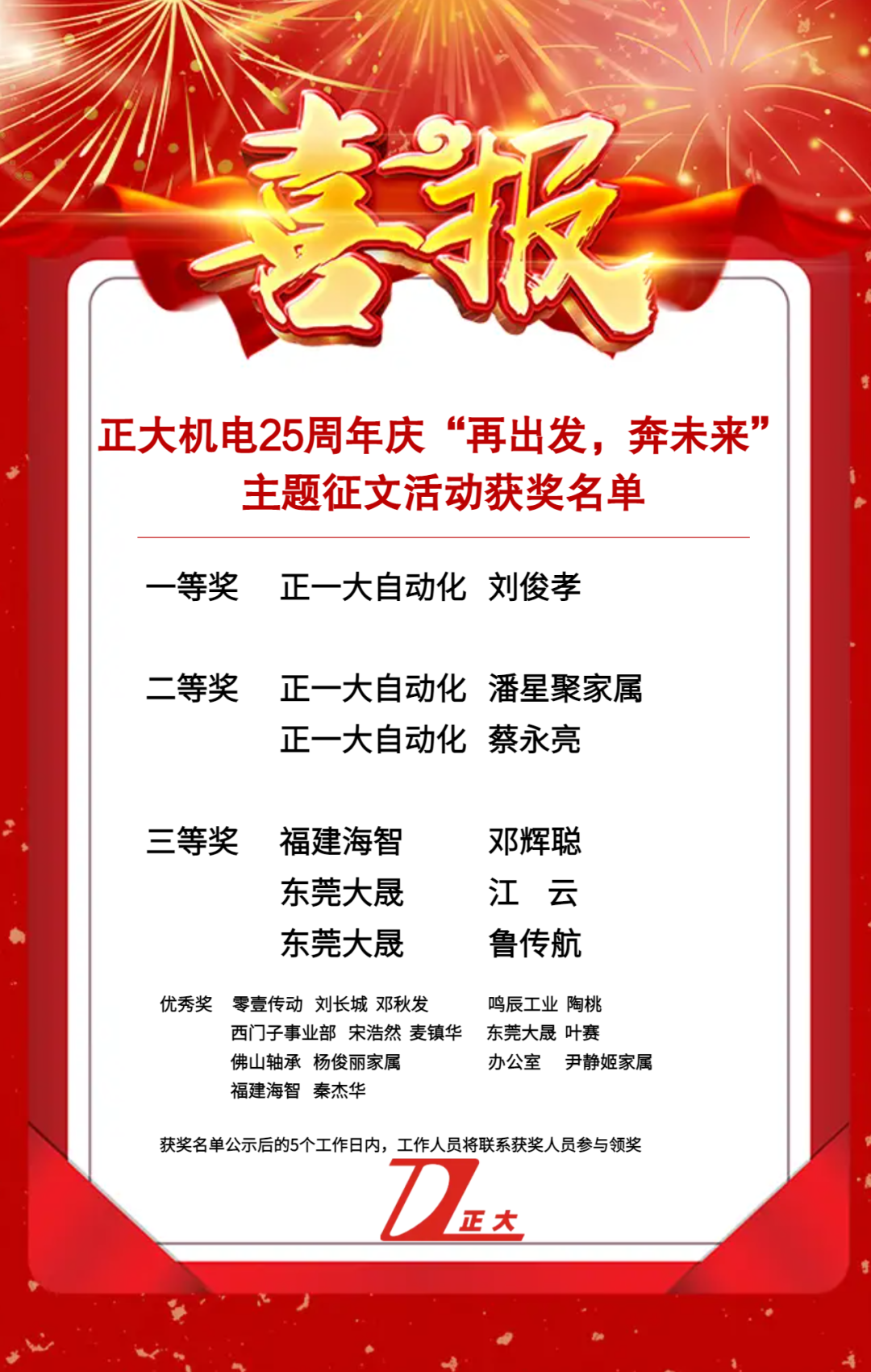 25周年庆“再出发,奔未来”主题征文活动获奖名单已出炉!正一大自动化刘俊孝荣获征文活动一等奖!