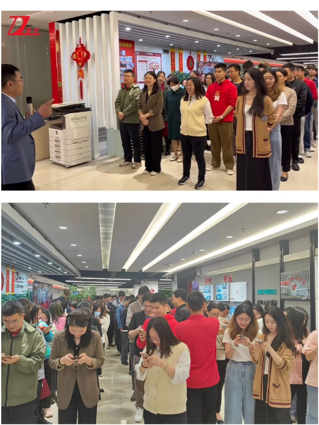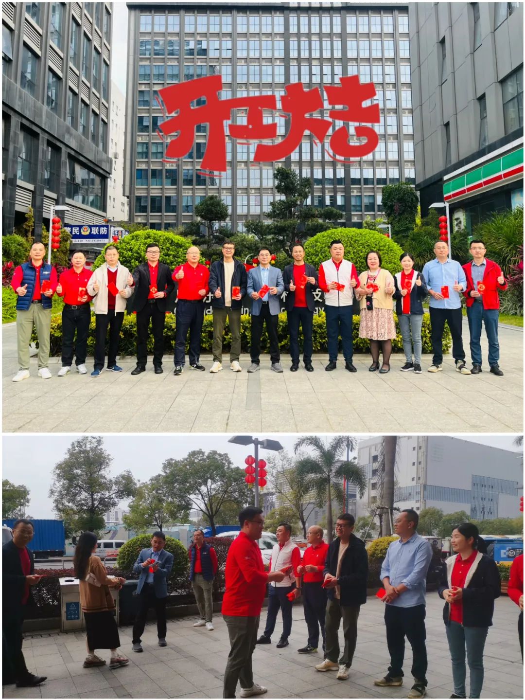上午7:20,董事们与各单位总经理齐聚公司1楼正门前,为陆续到来的同事们派发开门利是,开工首日派发开门利是是公司一直以来的传统,象征着新的开始,激励员工在新的一年用龙马精神,拼出龙腾虎跃的一年。现场热闹非凡,观看线上直播的同事们也都纷纷通过弹幕发起新春祝福。