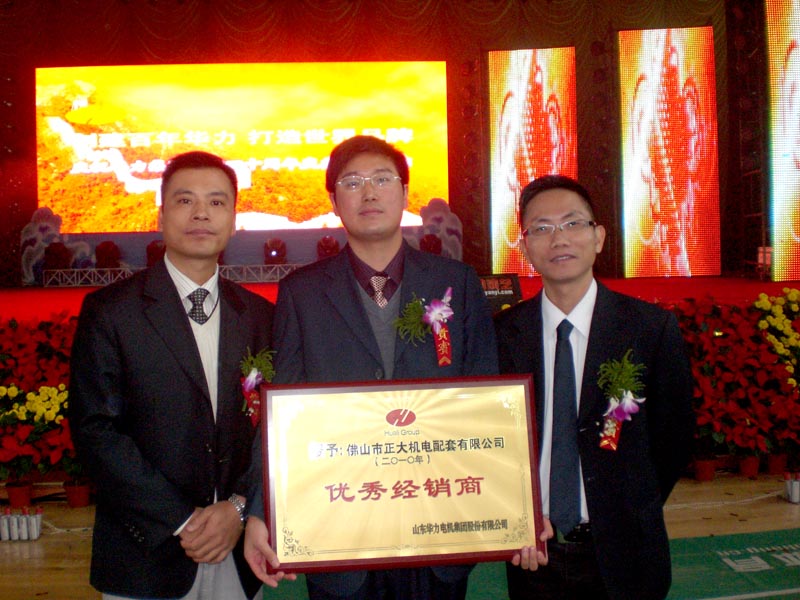 本次周年庆特别安排了庆典文艺晚会,诸多明星的精彩表演拉开了华力集团建厂40周年厂庆活动的序幕;庆典活动还分别设立了前10名全国“优秀供应商奖”和“优秀经销商奖“,佛山市正大机电配套有限公司在全国38家合作单位中脱颖而出喜获“优秀经销商奖”。 (电机事业部 汤艳平)