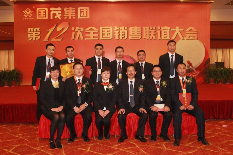 国茂集团董事长徐国忠(前右十)、总经理兼财务总监沈惠萍(前左八)与全国各销售分公司总经理合影(前右八为林艺总经理)