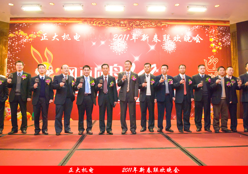 2011年1月22日,正大机电公司为表彰公司2010年工作先进代表迎接2011新年的来临,在佛山市瑞士恒安大酒店六楼罗萨峰厅隆重举行了“2010年年终表彰大会暨团年晚宴”。出席晚宴的嘉宾有一直关心和支持正大机电公司发展的广东省政协常委,原佛山市市长梁绍棠先生,佛山市企业家联合会会长,原佛山市人大常委副主任陈广灵先生,佛山市禅城区常务副区长葛承书先生,佛山市张槎街道副书记陆应潮先生,佛山市禅城区张槎街道办副主任何战等领导;出席晚宴的还有西门子(中国)有限公司,佛山市星光传动有限公司,广东省江门电机股份有限公司,佛山市南海区天洋电机制造有限公司,江门市蓬江区金富菱电机有限公司等战略供应商领导和家属;出席晚宴的公司领导有正大机电公司麦大掌董事长,正大机电公司王正虎总裁,佛山市正大机电配套有限公司林艺总经理等20多名高管以及正大机电公司职工代表、家属等约450人参加此次活动。