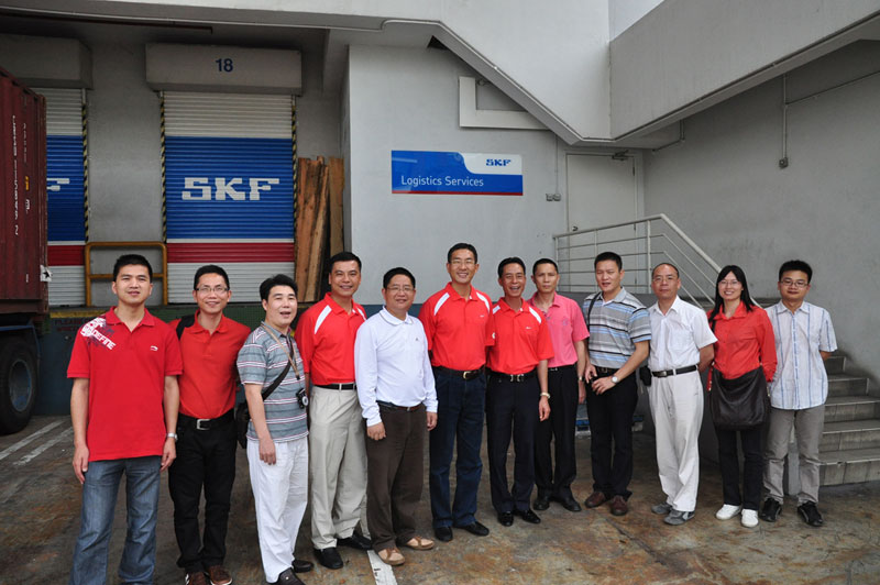 第二天一早,我们来到了SKF设在新加坡樟宜路的亚太区物流分拨中心,该中心的董事兼经理谢美龙热情的招待了我们,向我们介绍了物流中心的情况,原以为新加坡物流中心每年50多亿的吞吐量一定有一个巨大的仓库,但呈现在我们眼前的只是一个很小的仓库,这个仓库分两个区,一个区用于存放整箱的货物,十排货架从地面一直连到楼顶,用电脑控制机器自动堆放及拿取货物。一个区用于存放散箱的货物,这个区又根据进出的频繁情况细分为ABC三个区,工人们根据电脑指示在这里拣货并用流水线进行打包处理。整个仓库即充分利用空间又科学安排位置,从而达到“高效、低耗”。