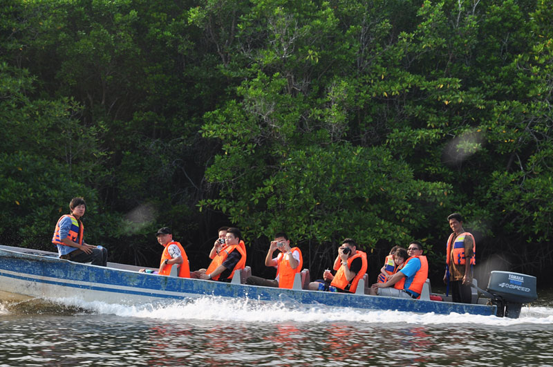 来到民丹岛怎么能不去红树林探险呢,我们坐着小船,驶入了一片原始的树林,在这里,景色是那么的自然,完全没有人为的雕饰,河道越来越窄,两旁的红树愈显茂密,越是深入,红树的根的形状也跟着变化,时不时还能看到歇息在树上的松鼠、蜥蜴、蛇以及跳跃在树上的猴子。
