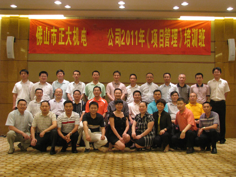 正大机电公司中高层管理干部《项目管理》培训班于2011年6月12日-13日在佛山市南海枫丹白鹭酒店开班。参加此次《项目管理》培训班的学员有正大机电公司下属佛山市正大机电配套系统、佛山正大机电轴承系统、佛山市正一大自动化系统等各控股公司共三十名学员,正大机电公司领导王正虎总裁,佛山市正大机电配套有限公司林艺总经理全程参与了《项目管理》课程学习;
