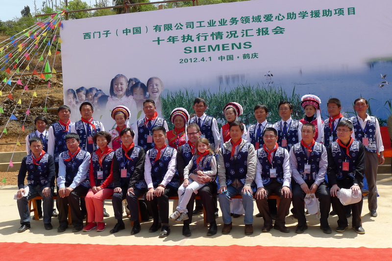 4月1日上午云南省丽江市鹤庆县的一个很偏远的小山村用她们较为特殊的礼节迎来一批远道而来的爱心人士:西门子(中国)有限公司CEO吴和乐博士及家人,西门子(中国)有限公司工业业务领域驱动技术集团机械传动部总经理和援凯先生,西门子(中国)有限公司工业业务领域工业销售分销商管理部总经理杨雪峰先生,广东零壹工业技术有限公司总经理林艺先生以及汕头众业达、苏州苏西电、南京鼎阳、上海大华、南京朗驰、北京天拓四方等西门子分销商负责人一行,在鹤庆县县长陪同下前往该县走访“由西门子与合作伙伴希望工程项目”,该项目是在2002年由西门子工业自动化与驱动技术集团 (IA&DT) 发起,并与西门子的商业合作伙伴一道,在云南偏远地区组建的一项爱心募捐活动。主要是帮助该地区的中小学改善教育基础设施以及资助特别困难的学生。在过去的10年中,IA&DT和合作伙伴们帮助当地建立了学校,宿舍楼,食堂和图书馆。并且,还资助了鹤庆很多贫困家庭的学生。在这十年中,共同资助了4500名,包括了黄平,柳河,松桂,西仪和金盾等地的贫困学生。