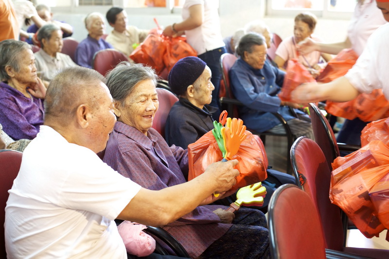 活动开始前,院长亲切地向我们介绍了张槎敬老院的概况,其中入住老人有228人,男性57人,女性171人,平均年龄在86岁以上。上午9时我们一行准时集中在敬老院的小礼堂,孰不知热情的老人们早已坐在小礼堂等候我们的到来了。活动中,在院长的引导下,我们与老人们进行了几个简单而快乐的互动节目,现场气氛浓厚,大家热情的歌声、灿烂的笑容,感染了在场的老人们,赢得阵阵掌声。活动的最后环节是派发节日慰问礼品,老人们犹如小孩一般开心满足。