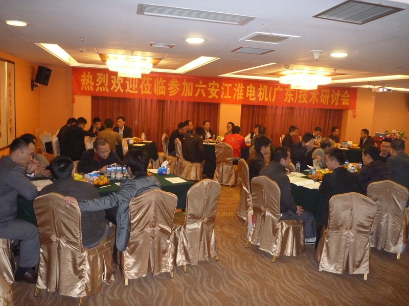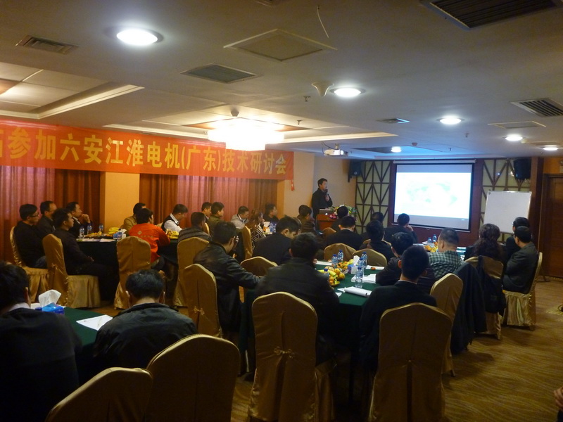 2013年11月29日,“江淮电机技术研讨会”在佛山石湾宾馆顺利举行。本次会议由安徽省六安江淮电机有限公司主办,佛山市正大机电配套有限公司协办。