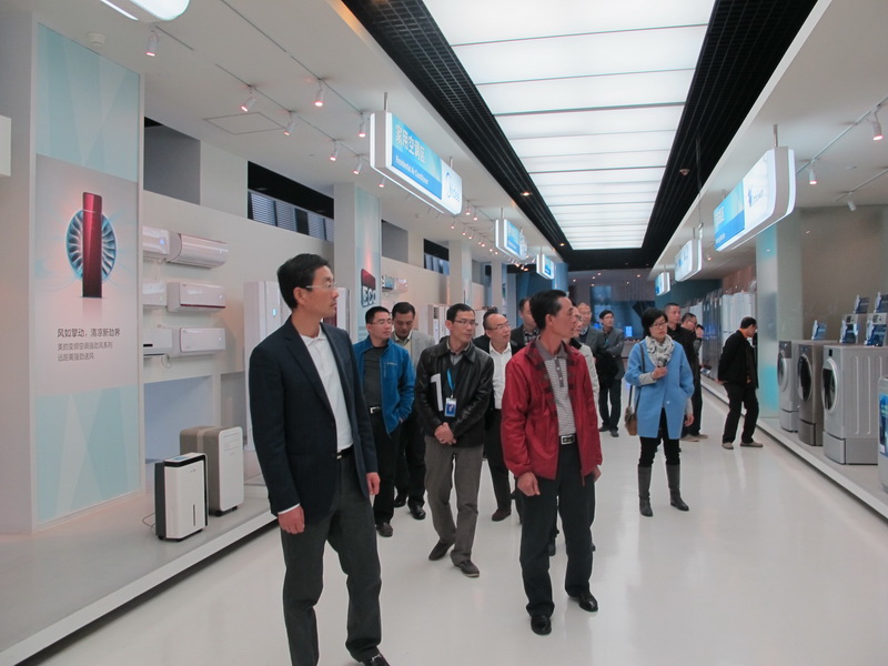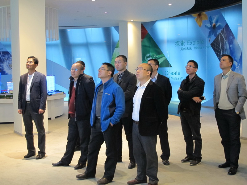 上午11点半,在美的集团总部大楼项目部领导的陪同下,公司领导一行先后参观了位于北滘镇中心城区美的集团总部大楼的地下停车库、地下中心库房、物业中心中控室、地面园林景观、美的员工饭堂、美的产品展示中心、美的历史馆、美的会议中心等设施。