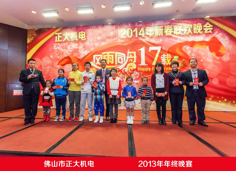 晚宴开始前,由广东零壹工业技术公司林艺总经理为本次晚宴致辞,接下来分别是正大机电公司最大的合作伙伴——西门子(中国)有限公司广州分公司李士光总监、正大机电公司王正虎总裁致辞;随后,公司对优秀员工进行了奖励,对2013年度“下一代培养与公益基金”的运行情况进行了汇报,并对获得年度“下一代培养基金”奖励的员工子女颁奖;在麦大掌董事长给新股东颁发股权证,并为晚宴致辞后,主持人宣布晚宴正式开始。