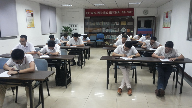 此次考试于8月29日晚上19:00—20:30在零壹下属的各分子公司及事业部的会议室或办公区域同时展开,考试试题包含公共知识和专业知识两部分,采用闭卷形式,由各协助人在同一时间将打印的试卷发给考试人员;做好的试卷除佛山地区统一由市场部批阅外,其他区域均由各单位负责人完成批阅。