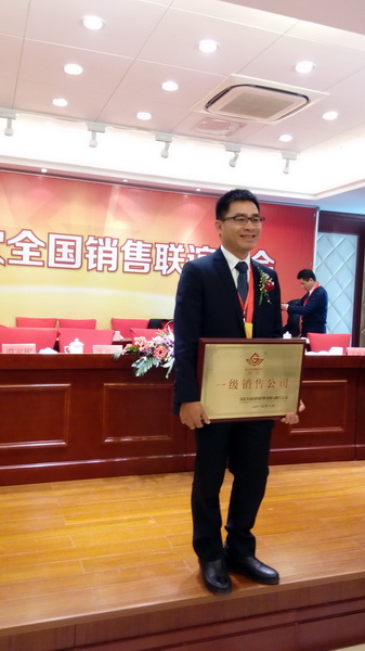 本次大会还为2014年度取得优异成绩的各销售分公司进行了嘉奖与鼓励,我司以6650万元的销售到账荣获亚军,连续8年被评为“一级销售公司”,收获了含金量极高的“龙牌奖”!林艺总经理作为获奖代表上台领奖并致词,他总结了大家过去一年的拼搏与努力,并鼓励大家在新的一年齐心协力、创新变革、挑战极限、再创辉煌!