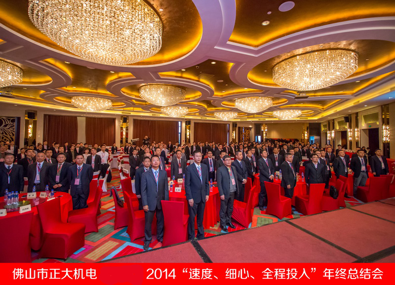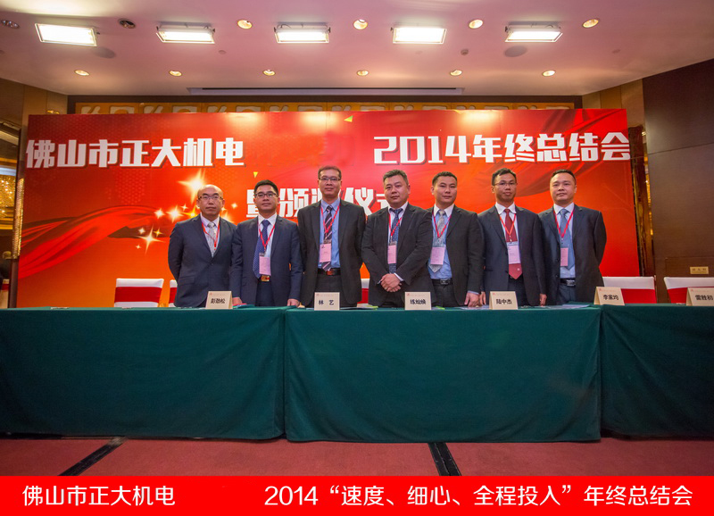2015年2月14日(星期六)下午,以"速度、细心、全程投入"为主题的正大机电公司2014年终总结大会暨颁奖仪式,在佛山市恒安瑞士大酒店六楼罗萨峰宴会厅隆重举行。正大机电公司麦大掌董事长、王正虎总裁、以及正大机电公司下属各单位的领导和员工代表约350人出席了此次大会。