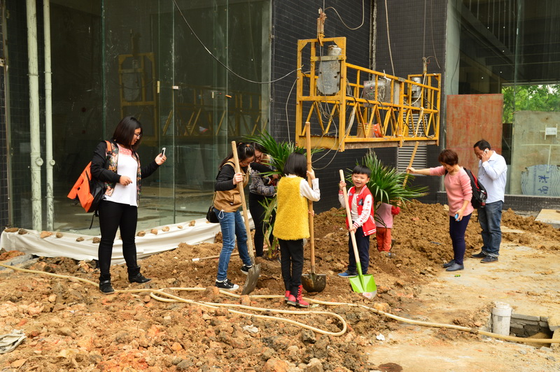 当天上午9时,来自正大机电公司各分子公司的员工及其子女、亲属等近100人,在零壹科技园集合,首先,大家步行前往汾江河绿道、零壹特种电机工厂参观;随后,大家回到零壹科技园营销中心、总部大楼(筹)、零壹国际公寓参观。参观完毕后,所有人员来到零壹科技园的园林绿化区,开始了植树活动,此次活动安排每个家庭齐心合力种植一颗小树,上午10点半,植树活动正式开始。在现场,有的家庭是父亲挖坑、母亲和小孩抬树、填土,种完后,全体家庭成员又去取水、抬水,除了员工及其子女外,现场还有很多爷爷、奶奶也加入了种树的队伍,大家分工明确、热闹非凡。每个家庭都在零壹科技园顺利地种下了小树,同时也种下了美好的愿望。