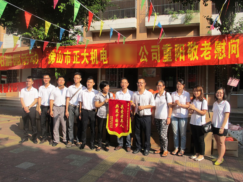 重阳节将至,正大机电公司一年一度的重阳节爱心敬老活动如期开展。2014年9月29日,公司一行十数人,前往佛山张槎敬老院探望长者并表达爱心。这是公司自2007年以来,连续第八年组织员工前往张槎敬老院举行重阳节慰问活动。
