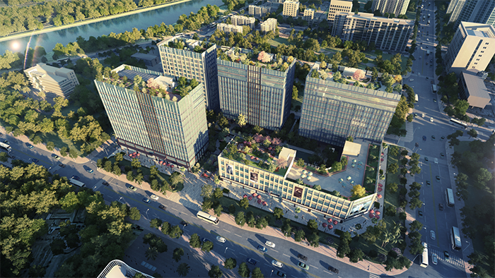 项目更通过在有限的空间内整合生态绿地、休闲空间、运动场地以及商务、购物、办公场所的外延空间,构筑新时代产业园的新范式。